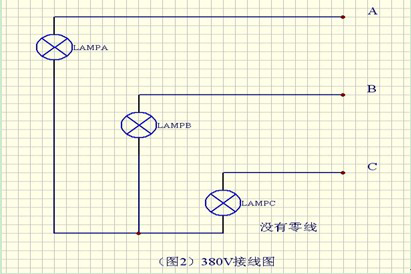 2、滑觸線電源指示燈在無零線的情況下,各指示燈的一端分別接電源A B C,另一端接在一起。這時(shí)請(qǐng)選用380V天車滑觸線電源指示燈。(如圖2)交流3000V同理。