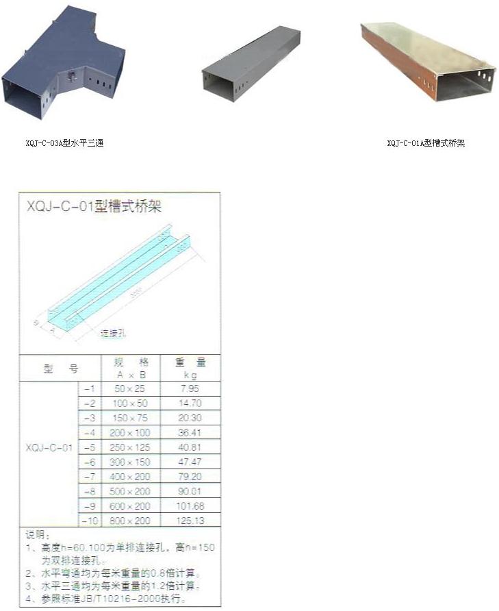 金屬電纜橋架托盤式電纜橋架具有重量輕、載荷大、造型美觀、結(jié)構(gòu)簡單、安裝方便等優(yōu)點(diǎn)。托盤式橋架是石油、化工、電力、輕工、電視、電訊等方面應(yīng)用最廣泛的一種。它既適用于動力電纜的安裝,也適用于控制電纜的敷設(shè)。托盤式橋架在不同跨距下最大允許均布載荷及變形量不同:托盤式橋架其表面處理分為靜電噴塑、鍍鋅熱鍍鋅、噴仿瓷、鍍鋅鈍化幾種,在重腐蝕環(huán)境中可特殊防腐處理。托盤式橋架血有護(hù)罩,其所有配件與梯級式、槽式橋架通用。