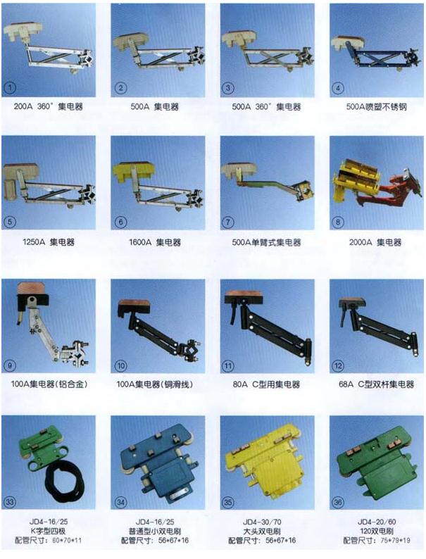 選用滑觸線集電器的時候,首選集電器最好是考慮和滑觸線相配套,不要亂用集電器,否則會影響行車的正常運行,嚴重了會燒壞滑觸線。集電器上面的靴片是由含銅碳基壓制而成的,購買后要檢查與滑線的吻合型。由于集電器本身屬于易耗品,長期使用會磨損靴片,所以要定期檢查,集電器上面靴片的磨損程度,并定期更換。